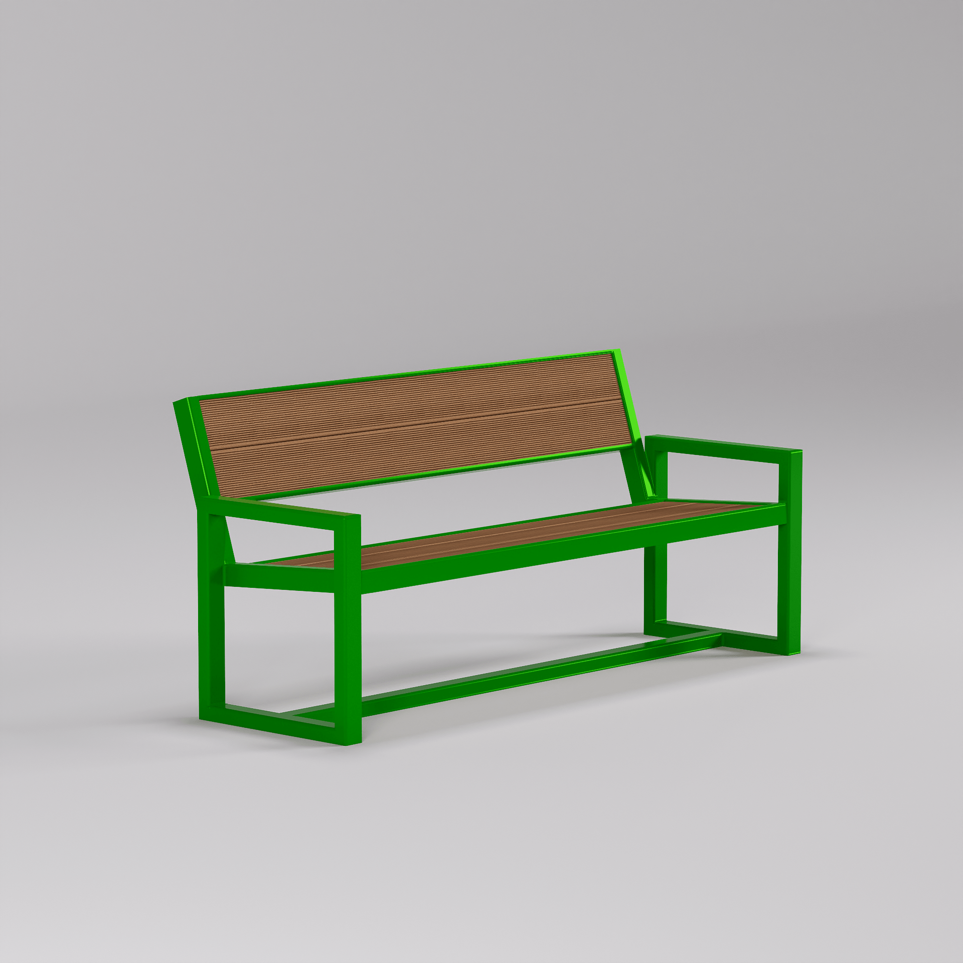 Cu nuanțe de maro și verde, banca de parc cu spătar GreenVista Bench se integrează armonios în peisajul urban, adăugând un strop de eleganță modernă. Designul său minimalist o face versatilă, potrivindu-se perfect atât în parcuri tradiționale, cât și în spații publice moderne.
