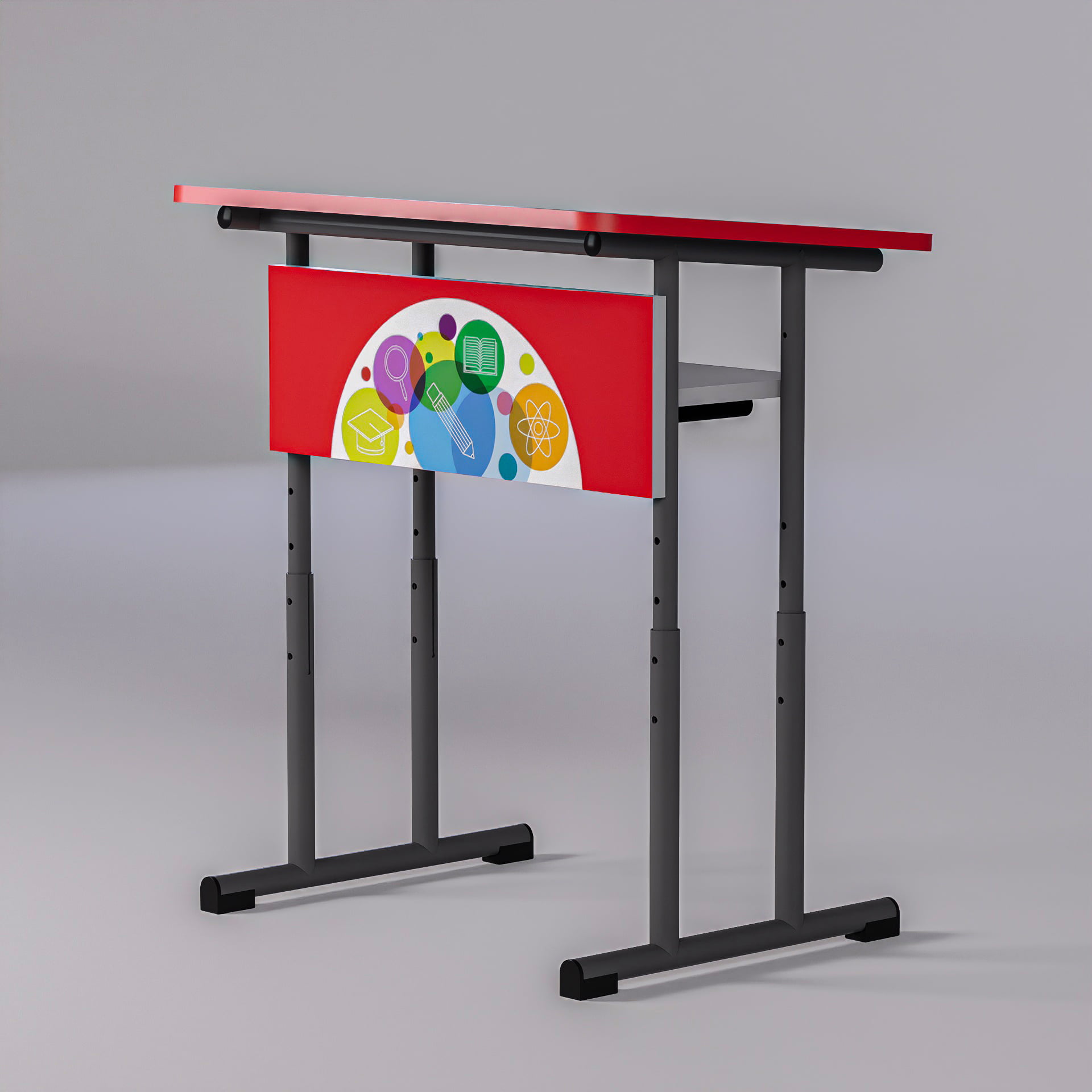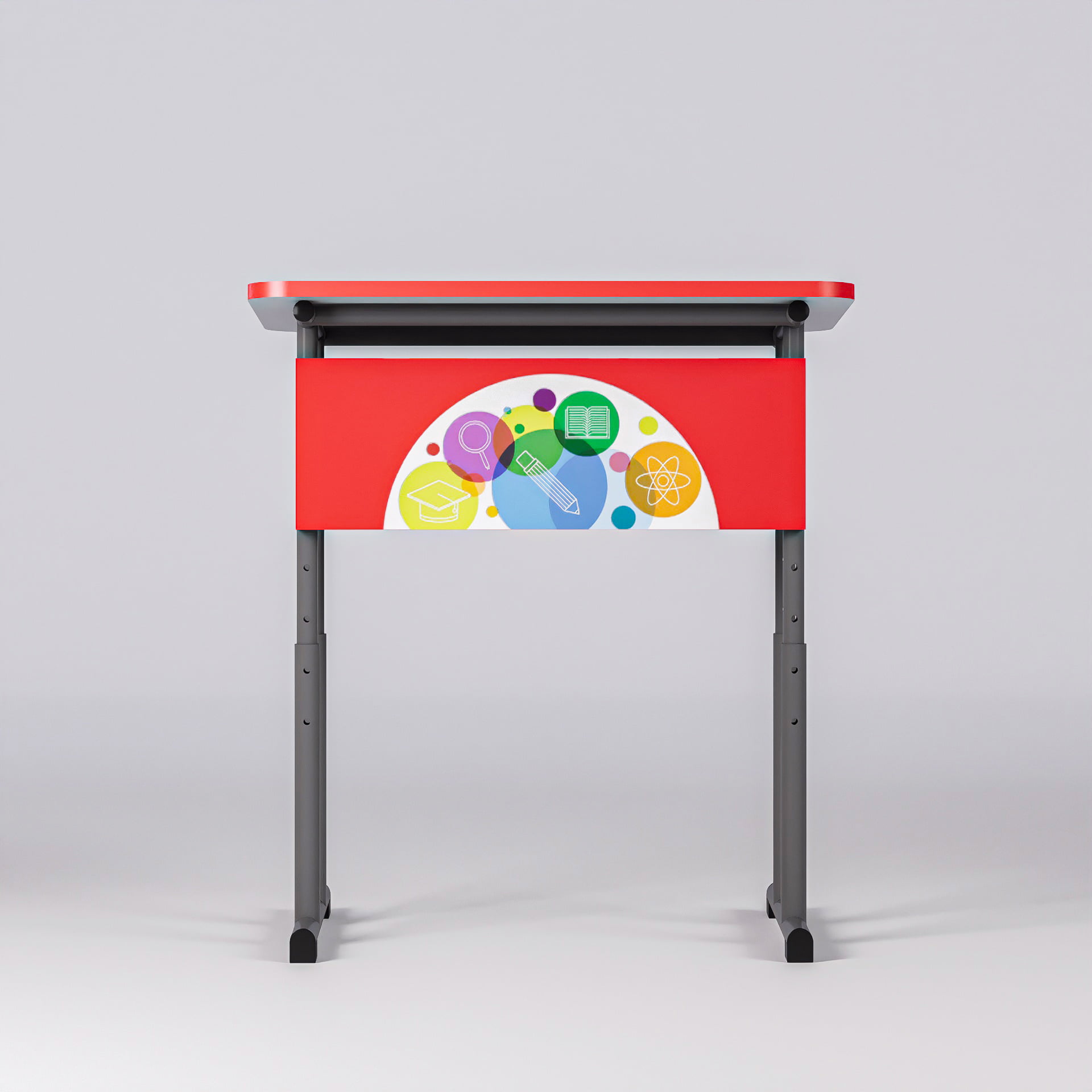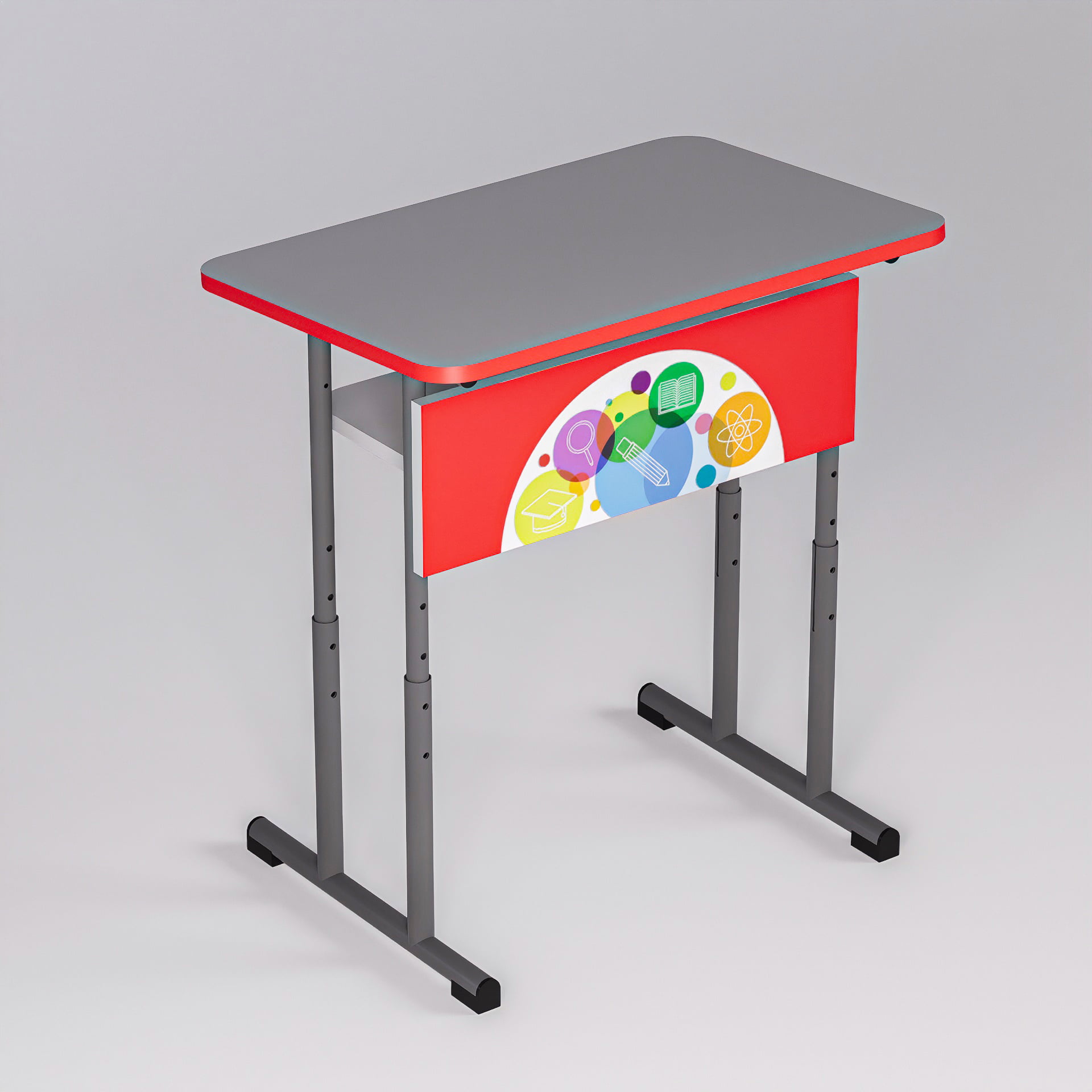 Banca școlară individuală Happy Books poate fi personalizată pentru a se potrivi perfect cu specificul fiecărei școli sau săli de clasă. Culorile și accesoriile pot fi adaptate pentru a reflecta identitatea vizuală a instituției de învățământ, asigurând o integrare armonioasă în orice mediu de învățare.