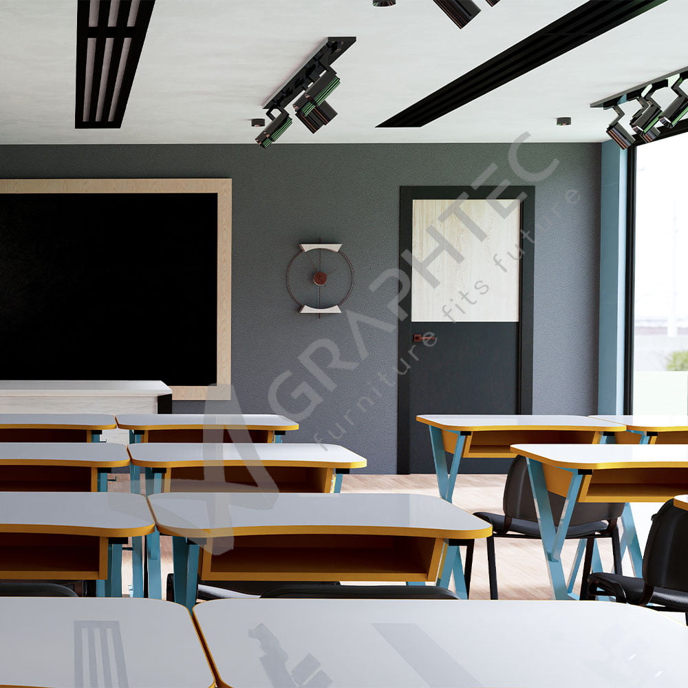 Idesk este proiectată pentru a se potrivi perfect în orice mediu educațional. Culorile și accesoriile pot fi personalizate pentru a reflecta identitatea vizuală a instituției, asigurând o integrare armonioasă și funcțională. Designul modular permite configurarea pentru diverse activități, de la studiu individual la proiecte de grup. Cu Idesk, transformi fiecare clasă într-un spațiu vibrant, organizat și adaptabil, care motivează și inspiră elevii.