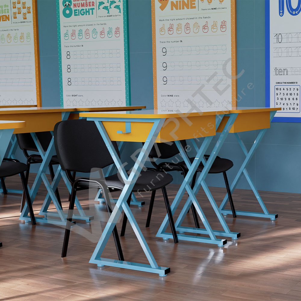 Idesk combină un design ergonomic cu funcționalitate practică, asigurând un mediu de învățare confortabil și sigur. Picioarele triunghiulare și colțurile rotunjite oferă stabilitate și prevenirea accidentelor, fiind ideale pentru utilizarea zilnică în școli. Aceste elemente de design nu doar că îmbunătățesc siguranța, dar și creează un spațiu atrăgător și plăcut, care stimulează concentrarea și creativitatea. Astfel, fiecare copil este inspirat să-și descopere și să-și valorifice propriile abilități, într-un cadru care promovează învățarea și dezvoltarea personală.