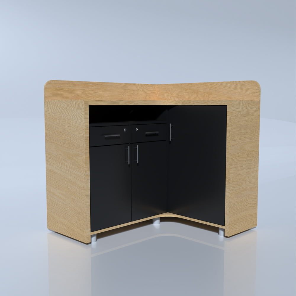 Un birou receptie mic din lemn natur Duo Embrace este un element de efect în amenajarea spațiului de lucru, fiind perfect pentru afacerile care doresc să creeze o atmosferă prietenoasă și familiară. Fațadele recepției joacă un rol estetic important, transformând acest mobilier practic într-un element de decor care contribuie la frumusețea și profesionalismul încăperii.