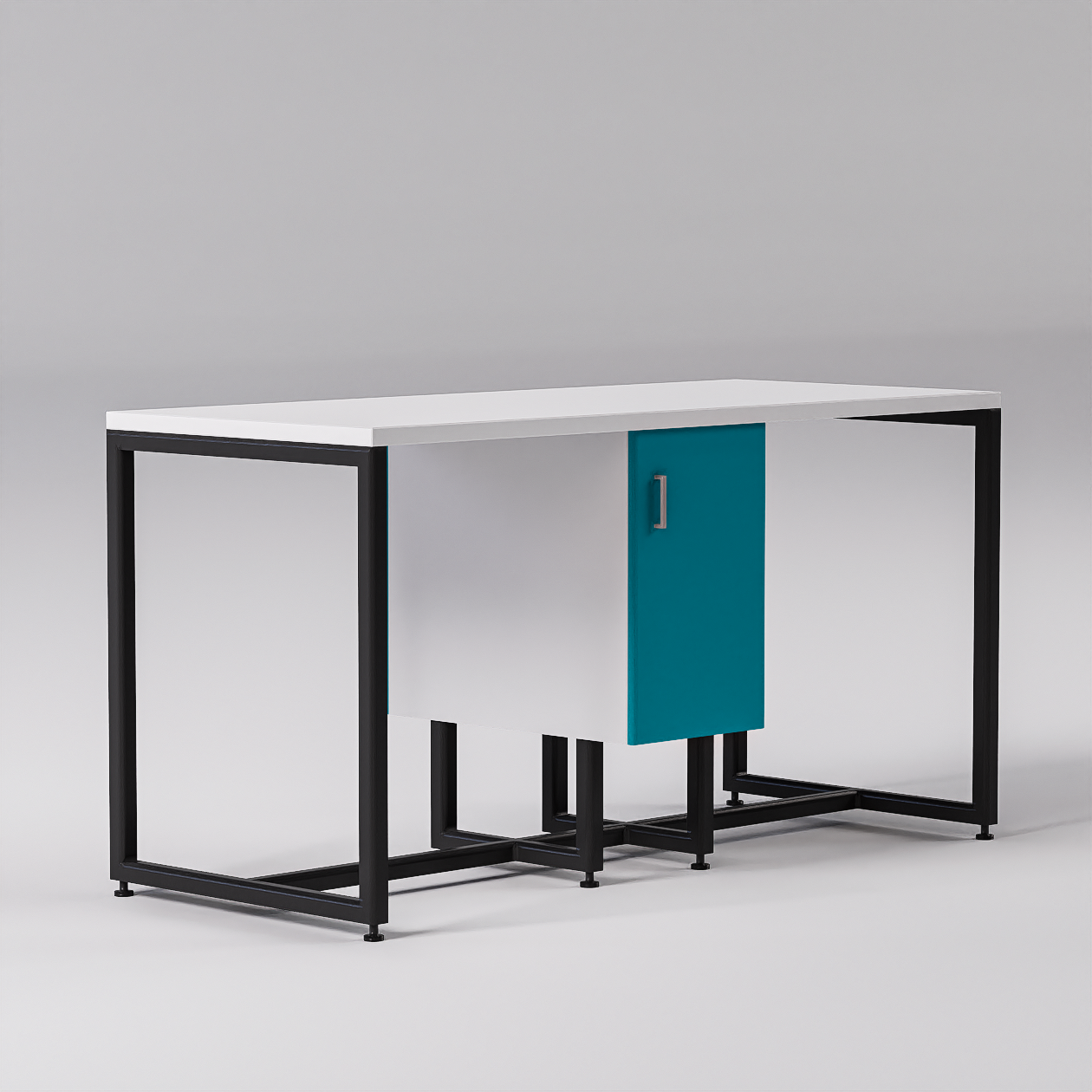 - Material: Structură metalică vopsită electrostatic și pal melaminat