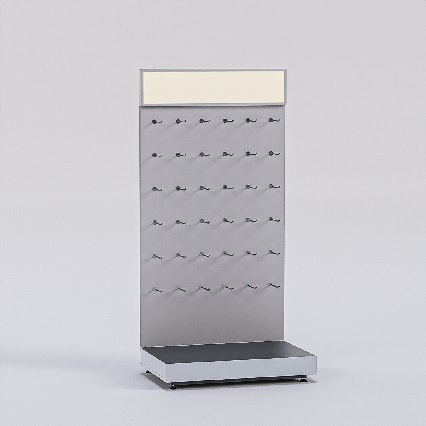 Unul dintre punctele forte ale raftului Neotech este sistemul său de carlige metalice integrate, care îți permite să organizezi eficient produsele mici, cum ar fi accesorii de telefoane sau gadgeturi. Aceste carlige nu doar că asigură un spațiu ordonat, dar și ușurează accesul și vizibilitatea fiecărui produs în parte, astfel încât clienții să poată găsi rapid ceea ce caută.