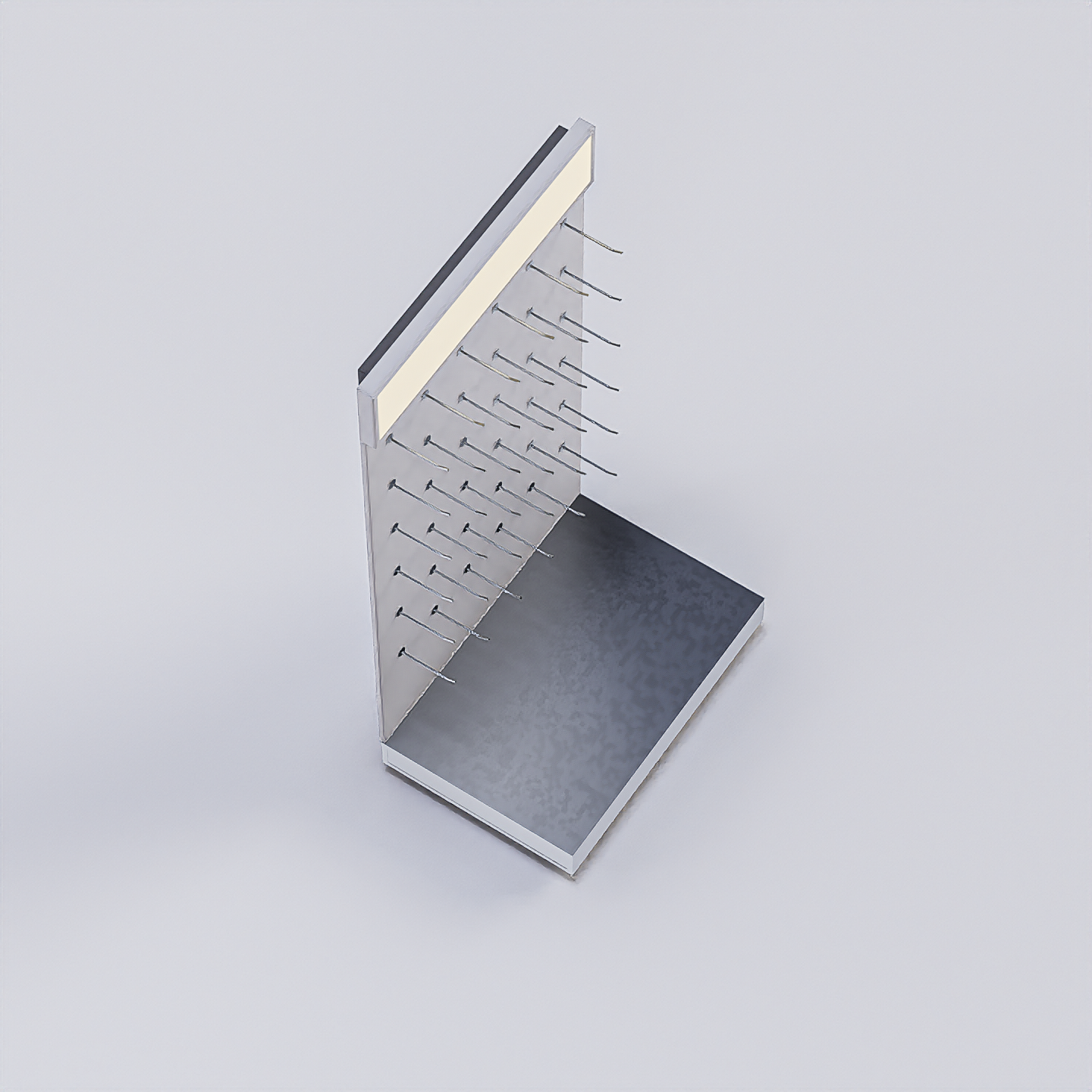 Construit din PAL melaminat, structură metalică și plexiglas, modelul de raft cu carlige Neotech este gândit pentru a rezista în timp, chiar și în medii comerciale cu trafic intens. Aceste materiale oferă un echilibru perfect între rezistență și aspectul estetic, asigurând o durată de viață lungă și păstrându-și în același timp finisajele impecabile.