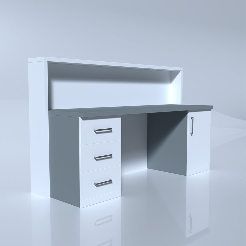Birou receptie cu spații numeroase de depozitare