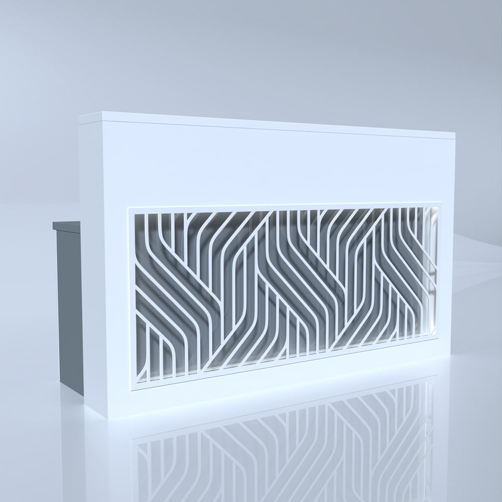 Acest birou receptie se remarcă prin liniile sale organice și fermecătoare, care adaugă o notă de rafinament și modernitate oricărui spațiu. Designul său minimalist și atractiv stârnește interesul, transformându-l într-un punct focal în orice încăpere în care este plasat. De asemenea, fațada decorativă contribuie semnificativ la estetica spațiului, oferind în același timp funcționalitate și eleganță.
