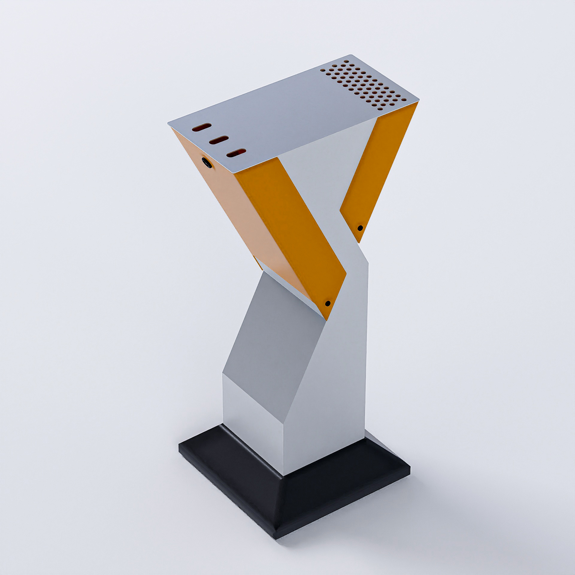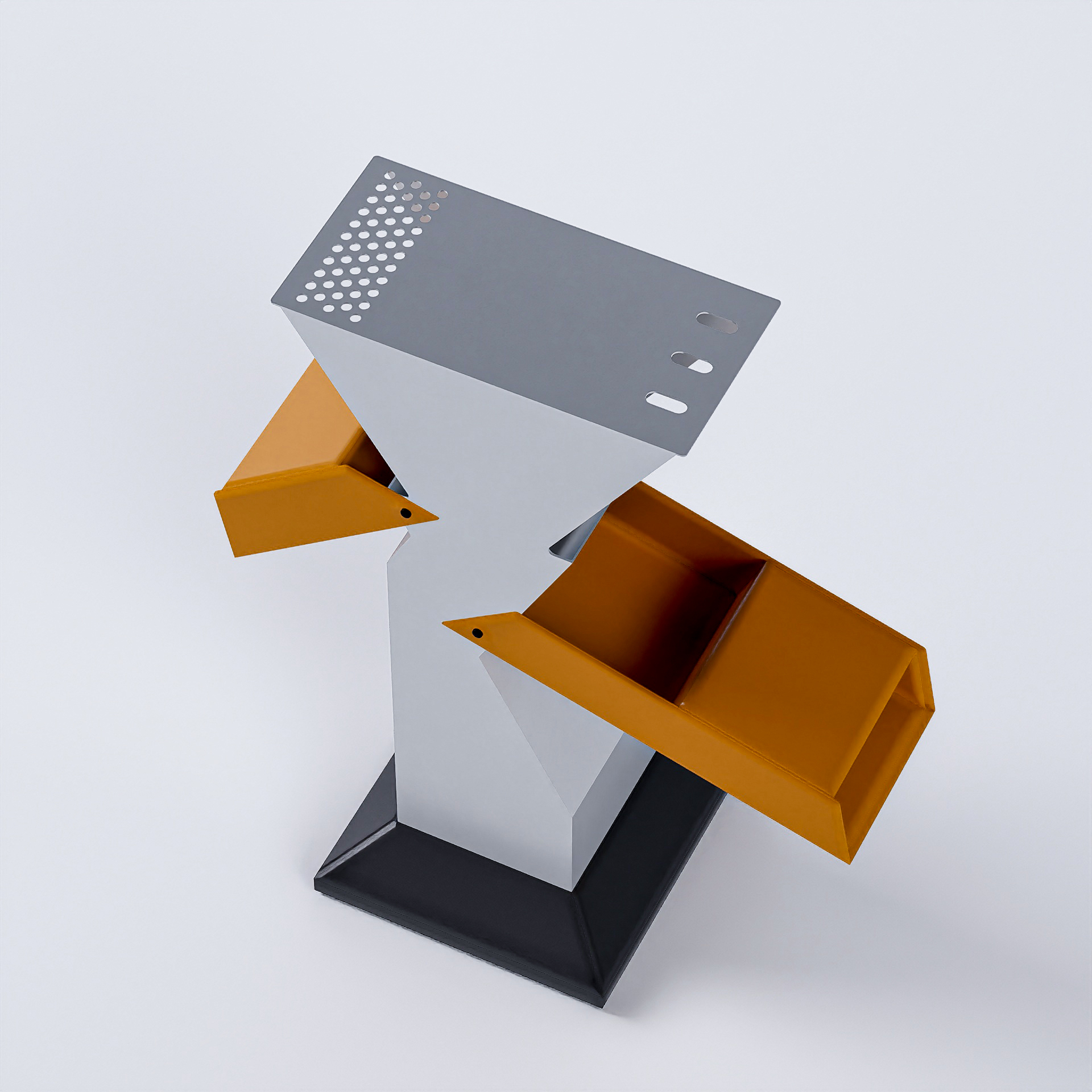 Scrumiera metalică AeroAsh se remarcă printr-un design futurist care atrage atenția și completează perfect orice amenajare exterioară modernă. Fabricată din tablă metalică vopsită electrostatic, aceasta prezintă un finisaj neted și sofisticat care rezistă cu succes la intemperii. Culorile disponibile – alb, negru, portocaliu și galben – permit integrarea ușoară în orice decor, oferind opțiuni pentru personalizare în funcție de nevoile estetice ale spațiului tău.