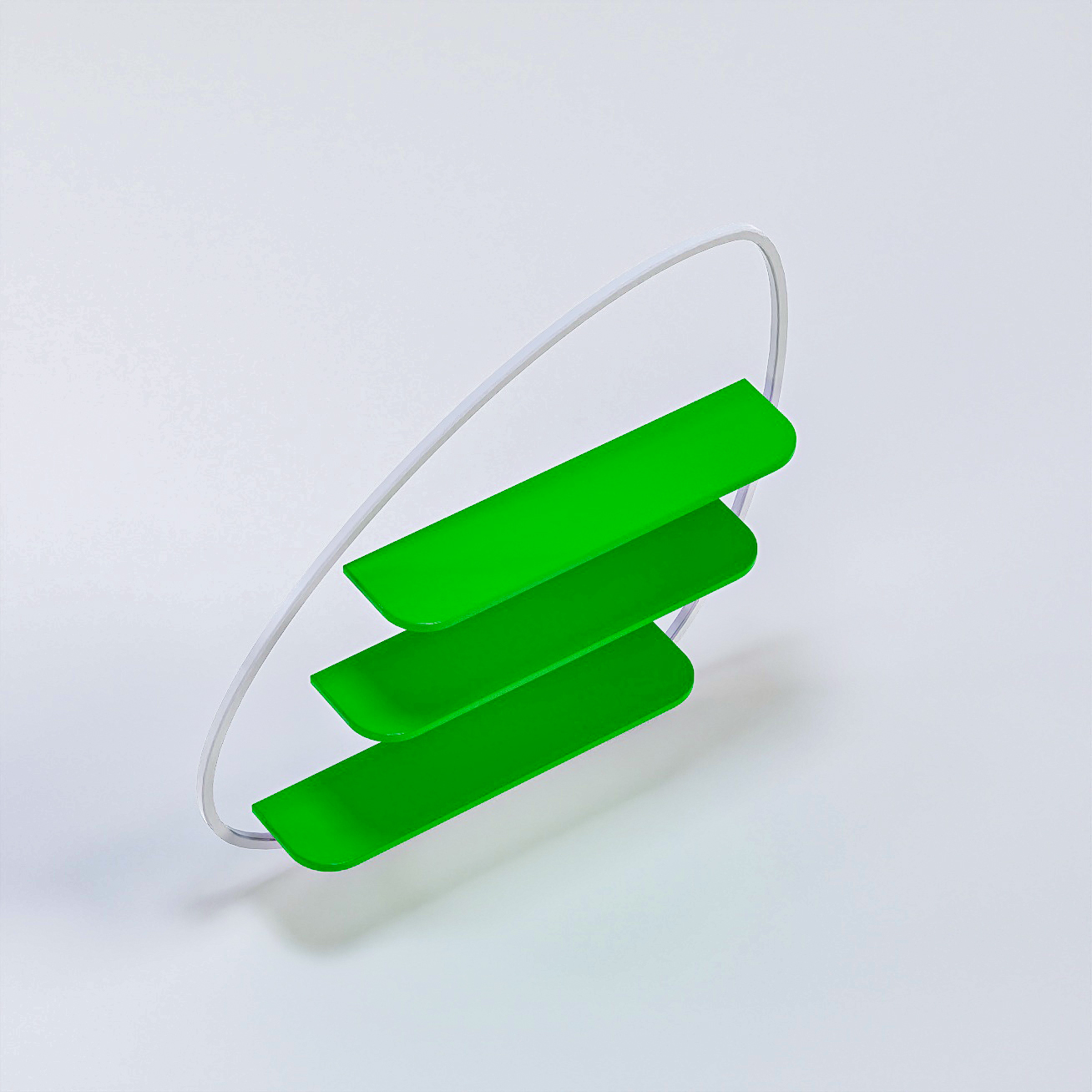 Cele trei polițe verzi, drepte și simple, oferă suficient spațiu pentru expunerea diferitelor produse, de la suplimente și medicamente, la produse cosmetice și de îngrijire personală. Designul acestora este gândit pentru a oferi acces facil clienților, facilitând astfel procesul de achiziție și îmbunătățind experiența de cumpărare.